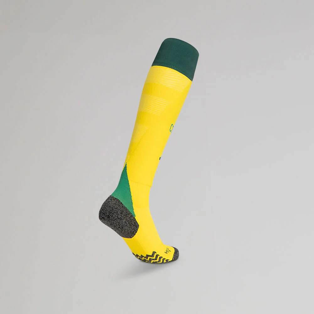 Complete the kit. The new adidas x Celtic 2024/25 Away Socks come in yellow to match the jersey. The green detailing on the top and the Achilles is consistent with the overall design of the kit, and the adidas performance logo is joined by a CELTIC text script on the front. These junior socks complete the kit for your little Celtic fans.