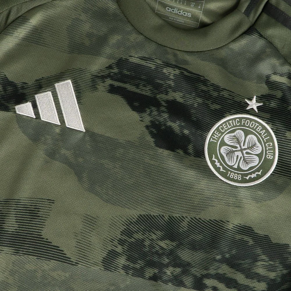 Thirty years on from the end of terracing at Celtic park, we pay tribute to 'The Jungle'. This year's adidas x Celtic Third Shirt features a camouflage-style design inspired by a sea of fan flags and scarves. The jersey is complete with the adidas performance logo and iconic Celtic crest embroidered on. This junior jersey allows the next generation of fans to support proudly.